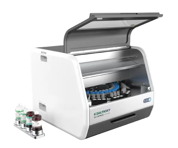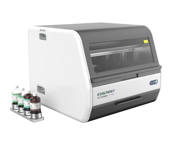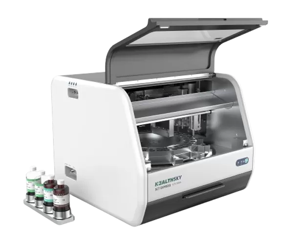 HealthSky SCTE-3600A adalah stasiun kerja Cytology berbasis cair sepenuhnya otomatis digunakan untuk pemrosesan dan noda spesimen cytology. SCTE-3600A ini menghasilkan slide monolayer dengan latar belakang yang bersih, deposisi sel yang optimal, dan morfin seluler yang lebih baik. Slide yang diproduksi dapat digunakan untuk kategori cytologic seperti yang ditentukan oleh sistem Bethesda.